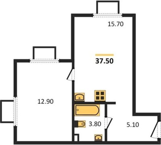 Площадь от 36.9 м2