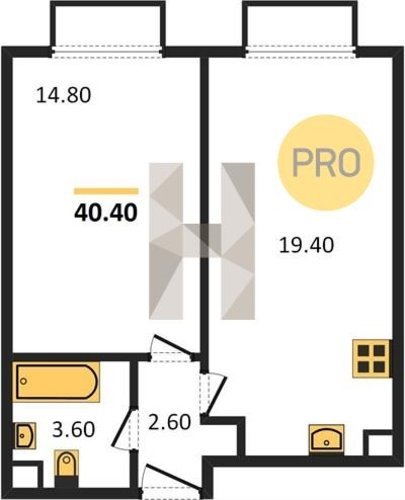 Площадь от 20.4 м2