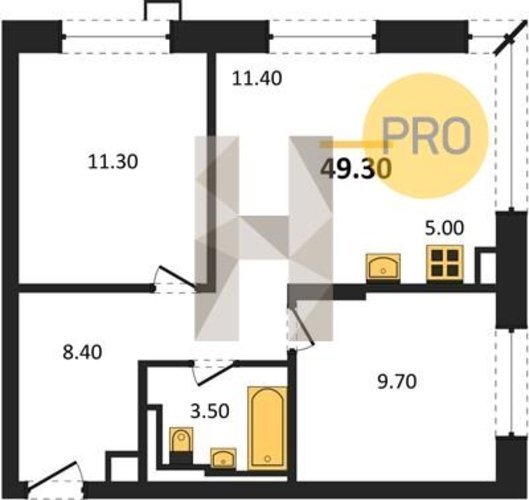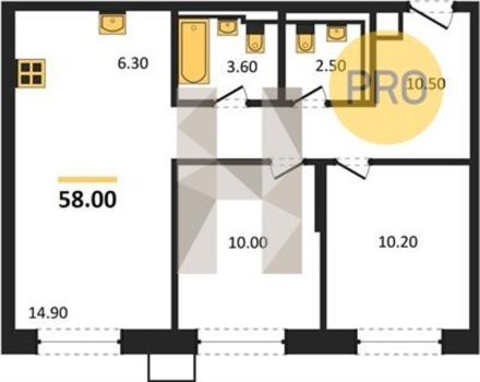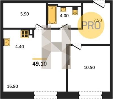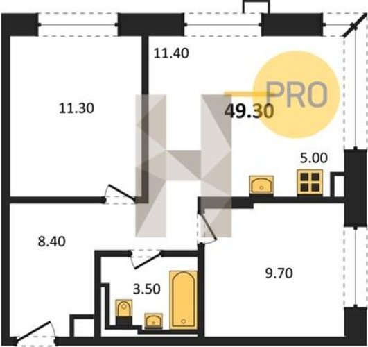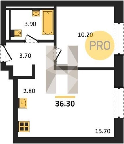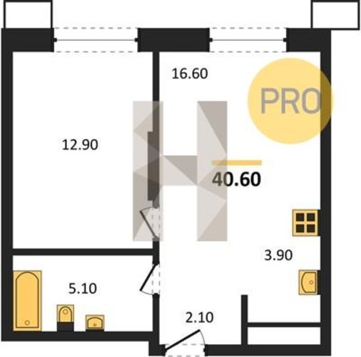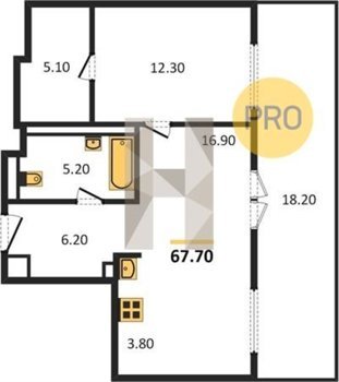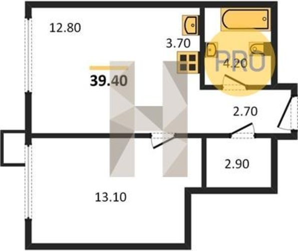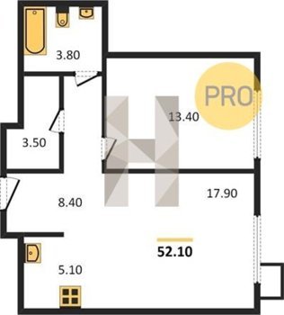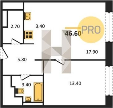 Площадь от 33.5 м2