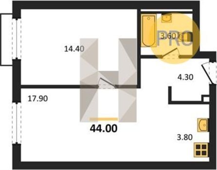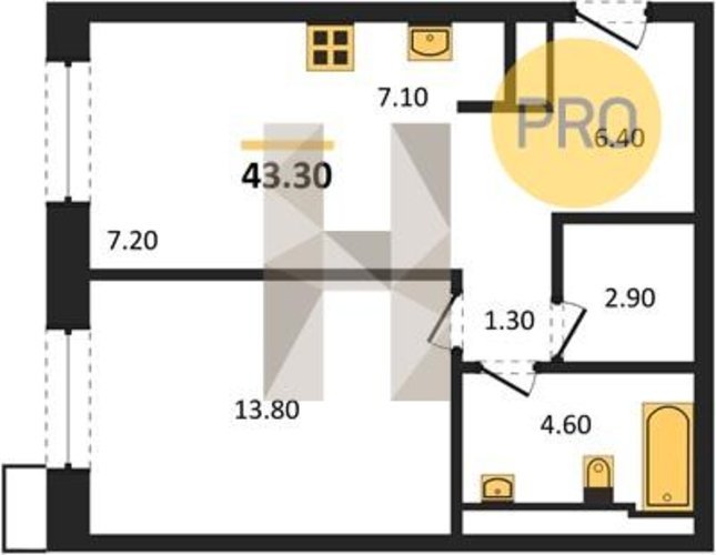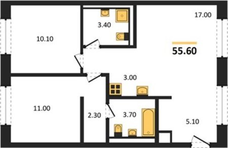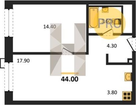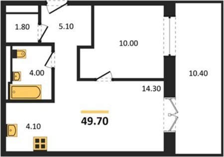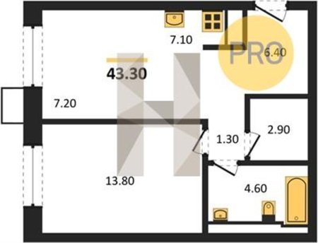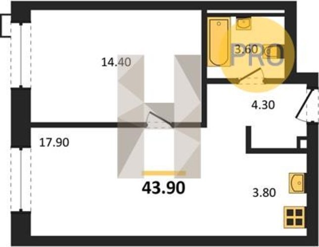 Площадь от 43.7 м2